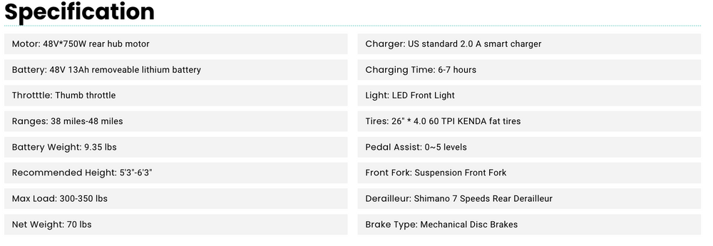 The removable waterproof battery makes it possible to ride in any weather, and the fat tires make it easy to control the bike on loose terrains and even on snow.